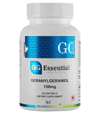 Geranylgeraniol (GG) is an endogenous compound naturally made in 30 parts of the human body by the same mevalonate biochemical pathway that synthesizes cholesterol, Vitamin K2, steroid hormones and ubiquinone (CoQ10). GG is an essential building block that supports muscle health, bone health, hormone regulation and CoQ10 synthesis.