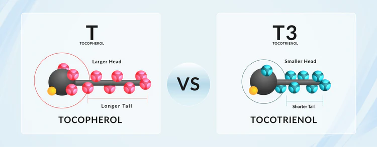 Tocotrienols are made up of a shorter molecular structure and therefore are light in weight and have increased mobility; they cover larger cellular surface areas and are able to penetrate into a vast number of cells due to their smaller size, making them almost 50x times more effective than Tocopherols.